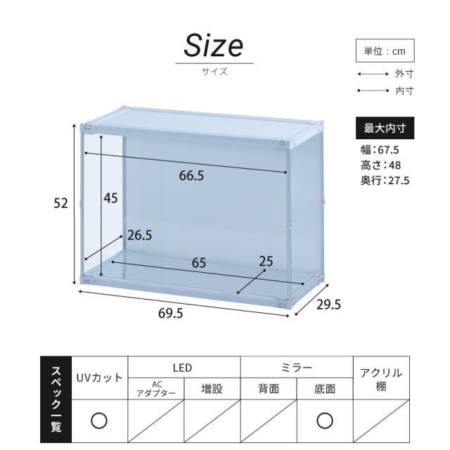ジェイステージ jstage j-stage フィギュアケース コレクションケース ディスプレイケース アクリルケース UVカット 紫外線カット アクリル フィギュア フィギア ガンプラ モンコレ 一番くじ ゴジラ 色あせ防止 大型 でかい 積み重ね 横型 横型タイプ 卓上 安い おしゃれ 人気 約 幅70 高さ50 奥行30 cm modu case 底面ミラー 下ミラー ミラー 鏡