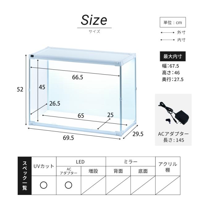 ジェイステージ jstage j-stage フィギュアケース コレクションケース ディスプレイケース アクリルケース UVカット 紫外線カット アクリル フィギュア フィギア ガンプラ モンコレ 一番くじ ゴジラ 色あせ防止 大型 でかい 積み重ね 横型 横型タイプ moducase 卓上 安い おしゃれ 人気 約 幅70 高さ50 奥行30 cm LED ライト 照明 led照明