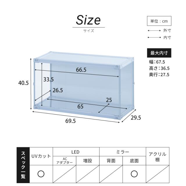 ジェイステージ jstage j-stage フィギュアケース コレクションケース ディスプレイケース アクリルケース UVカット 紫外線カット アクリル フィギュア フィギア ガンプラ モンコレ 一番くじ ゴジラ 色あせ防止 大型 でかい 積み重ね 横型 横型タイプ 卓上 安い おしゃれ 人気 約 幅70 高さ40 奥行30 cm 底面ミラー 下ミラー ミラー 鏡