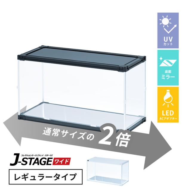 【ac付】 フィギュアケース led uvカット 底面ミラー 横長 積み重ね コレクションケース アクリル 大型 フィギュア ケース 【J-STAGE ワイド レギュラータイプ】