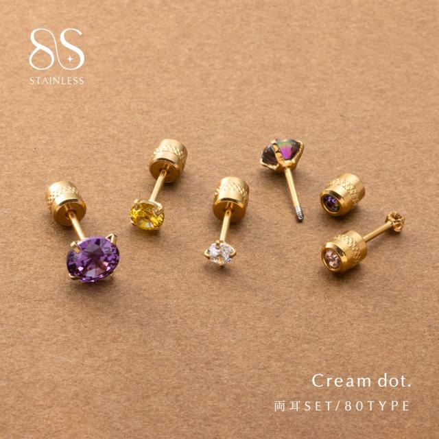キャッチが落ちないネジロック式のスタッドピアス。2mm〜6mmのサイズ、ボディーカラー、ストーンカラーなど幅広く選べる全80展開です。同色のビジューが煌くキャッチで、前後どちらから見ても可愛い◎必ず使えるベーシックなデザインだから、シーンに合わせて複数買いするのもオススメ♪錆びにくく傷に強いステンレス製です。