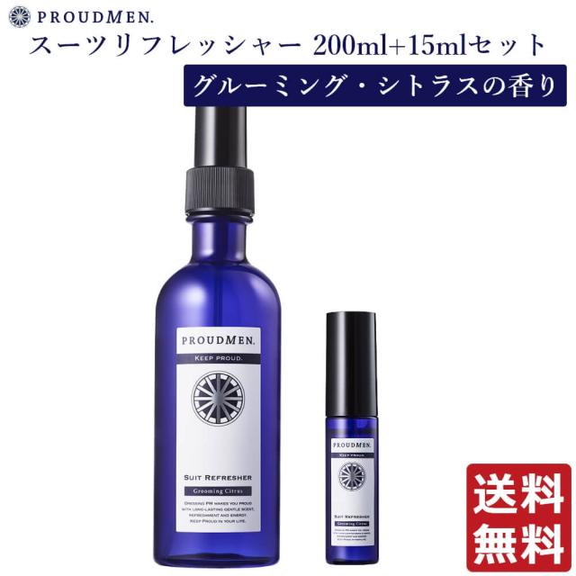 消臭スプレー 衣類 衣類用 消臭剤 PROUDMEN プラウドメン スーツリフレッシャー グルーミング シトラス 200ml + 15ml セット メンズコスメ
