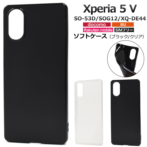 スマホケース Xperia 5 V SO-53D SOG12 XQ-DE44 ソフトケース シンプル 携帯ケース ストラップホール付き ノーマル 定番 スマホカバー 携帯カバー 透明 黒 背面保護カバー 背面保護 バックカバー スタンダード スマートフォンケース