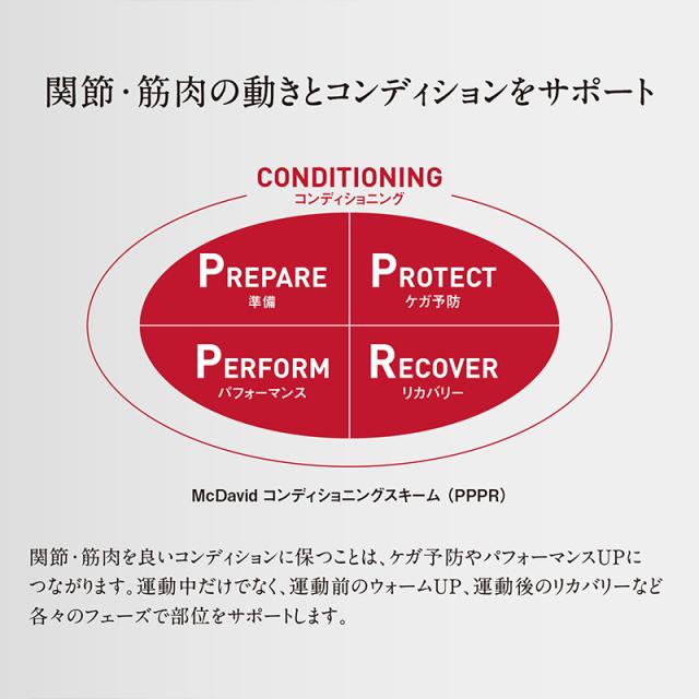 部位全体を包み込むように適圧でサポート。 運動時の筋肉のブレ(筋振動)を抑制し、ムダなエネルギー消費を軽減。 段階的な着圧設計が部位の血行促進をサポート。 テーピング理論に基づいた独自の「サポートライン」が部位の圧迫サポート力を強化。 汗ムレ・肌へのストレスを軽減。 薄く、通気性・速乾性に優れ、ムレにくい。 高い伸縮性&復元力で動きをサポート。 紫外線から皮膚を保護。 |