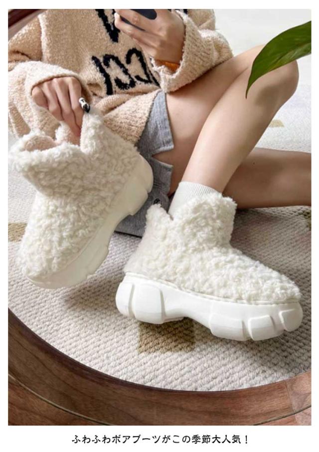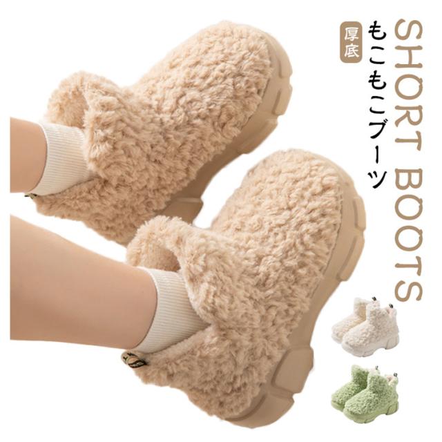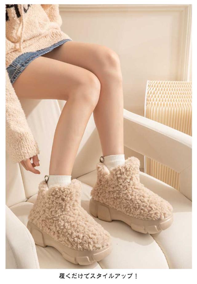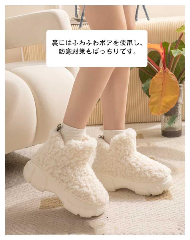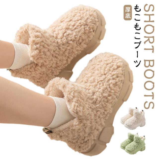 もこもこ 秋冬 裏ボア ブーツ 厚底 ショート ショートブーツ スノーブーツ ショート丈 厚底 ブーツ ふわふわ レディース ボア 歩きやすい ファイクファー エコファー ブーツ もこもこ ブーツ スノーシューズ 防寒
