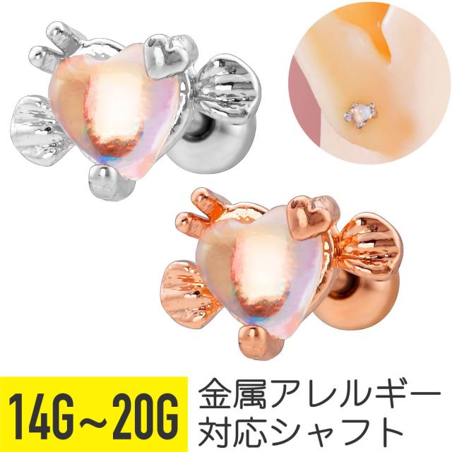 オーロラ ハート ジュエル ストレートバーベル 14G 16G 18G 20G サージカルステンレス ジルコニア ヘリックス 軟骨ピアス ボディピアス