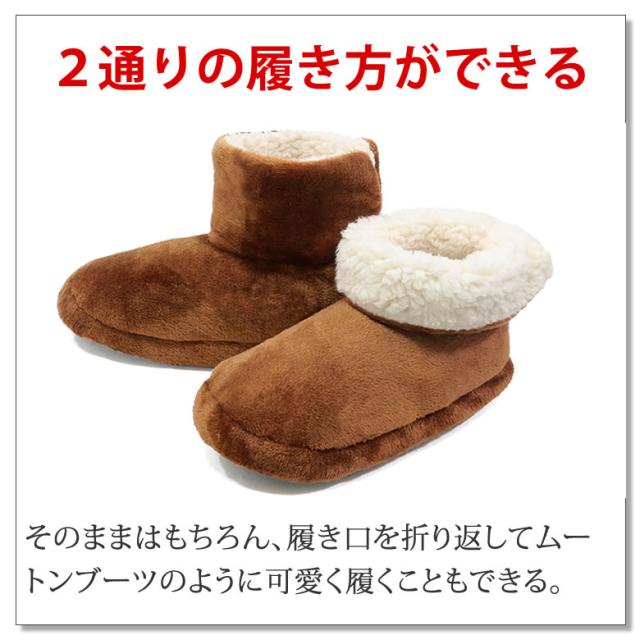 | アウトドアブランドのラドウェザー から、もこもこボアのルームシューズが登場! 普通のスリッパやルームシューズでは寒い時期に大活躍。 内側全体がふわふわのボアが、指先から足首上まで包み込んで足全体が暖かい。 後ろにV字の切り込みがあるおかげで着脱しやすく、足首部分を折り返して履くこともできる。 ソールには冷気を遮断するEVAシートの層と、クッション性の高いウレタンシートの層が入っており、厚みがあるで底冷えをシャットアウトしながら、長時間履いても足が痛くならない。 その上わずか85gと軽く、ストレスフリーに着用できる。 赤ちゃんや敏感肌の人でも安心のノンホルムアルデヒドで、お部屋での使用も安心。 底面には滑り止め付きでフローリングでも滑りにくい。 汚れても手洗いができるので、ルームシューズとお部屋どちらも清潔に保つことができる。 寒い時期のデスクワークや冷え性の方におすすめ。 ■足全体が暖かい 内側は足首から足の裏、つま先まで全体がボアなので足を入れた瞬間から暖かい。 ■ふんわり柔らかな履き心地 羊の毛のようなふわふわボアが足全体を包み込んで気持ちの良い履き心地。 ■2通りの履き方ができる そのままはもちろん、履き口を折り返してムートンブーツのように可愛く履くこともできる。 ■脱ぎ履きしやすい 後ろにV字の切り込みが入っているので、いつでもサッと履けてもたつかない。 ■極厚ソールで足が疲れない 靴底にはウレタンと冷気を遮断するEVAシートが入っていて厚みがあり、クッション性抜群。 ■重さわずか85g まるで何も履いていないような軽さでストレスフリーに着用できる。 ■肌に優しい素材 ノンホルムアルデヒドで刺激が少ないので、赤ちゃんや敏感肌の方でも安心。 ■滑り止め付きで安全 底面は滑り止め付きでフローリングのお部屋でも滑りにくい仕様。 ■手洗いできて清潔 汚れても手洗いできるので、ルームシューズとお部屋の両方を清潔に保つことができる。 | |