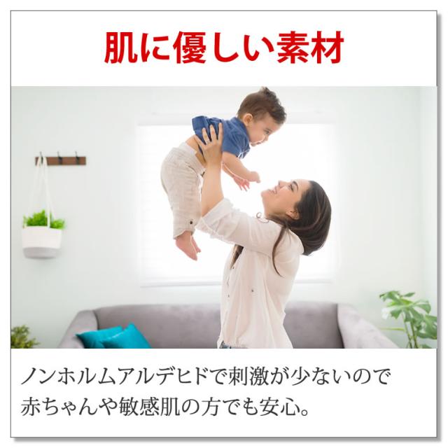 赤ちゃんや敏感肌の人でも安心のノンホルムアルデヒドで、お部屋での使用も安心。