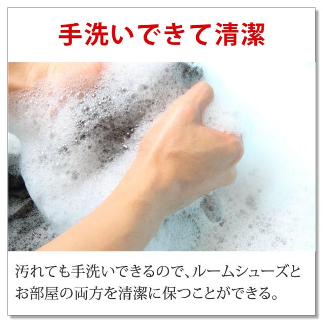 汚れても手洗いができるので、ルームシューズとお部屋どちらも清潔に保つことができる。