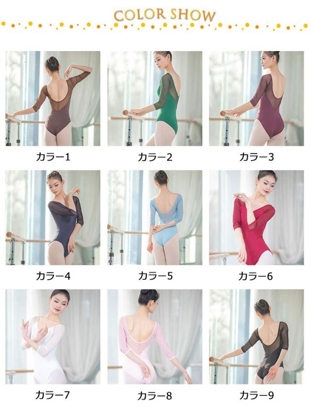 バレエ レオタード レディース 全9色 スカートなし ジュニア 大人 バレエ用品 7分袖 練習用 シースルー バレエレオタード ダンス 全9色 女性 練習着 発表会 シンプル 体操