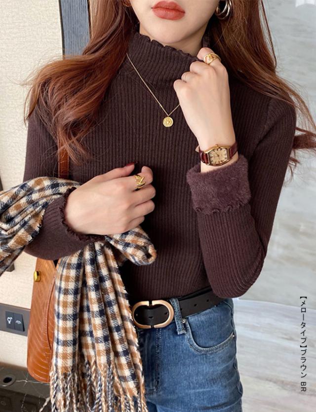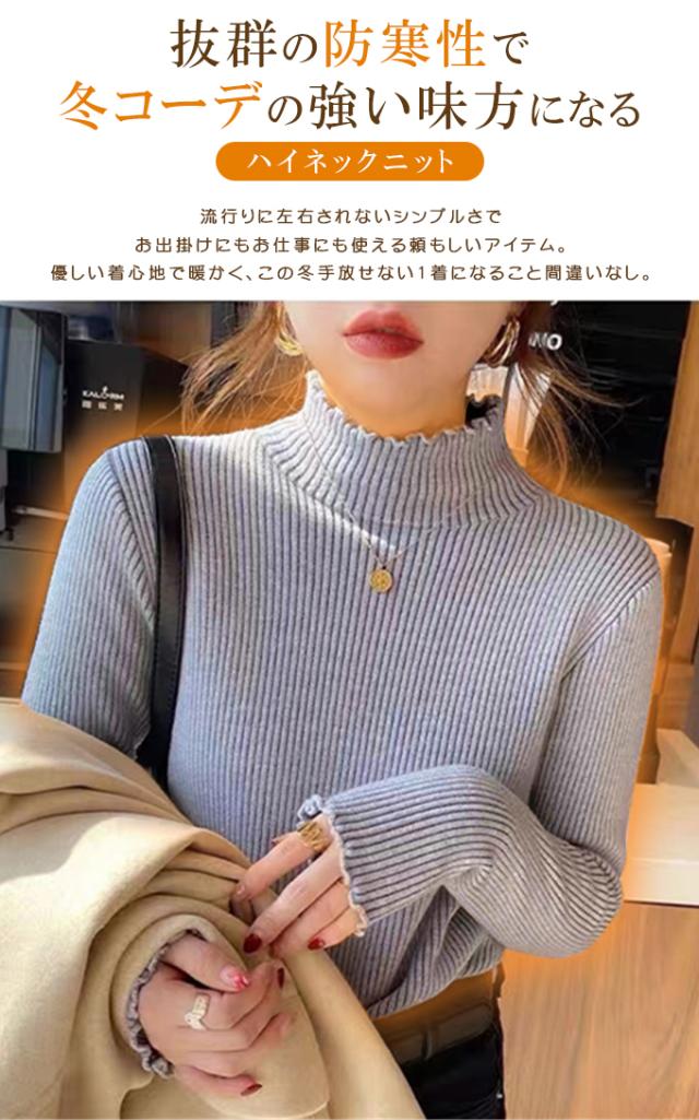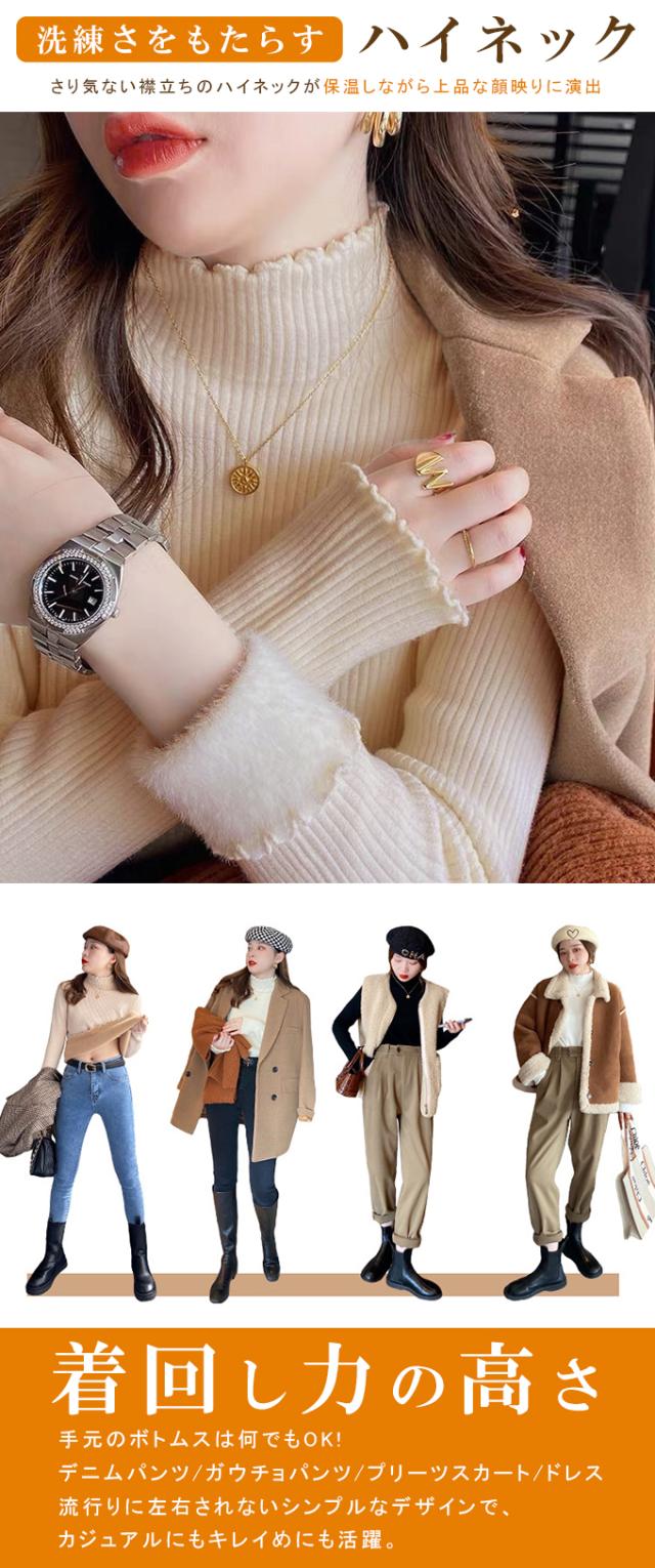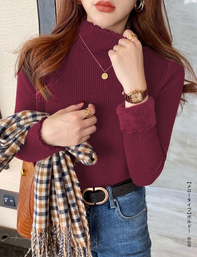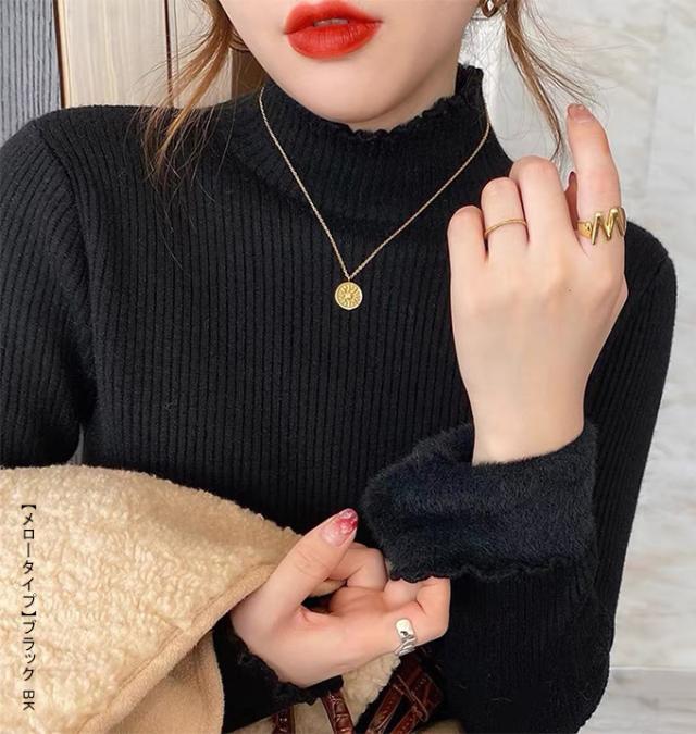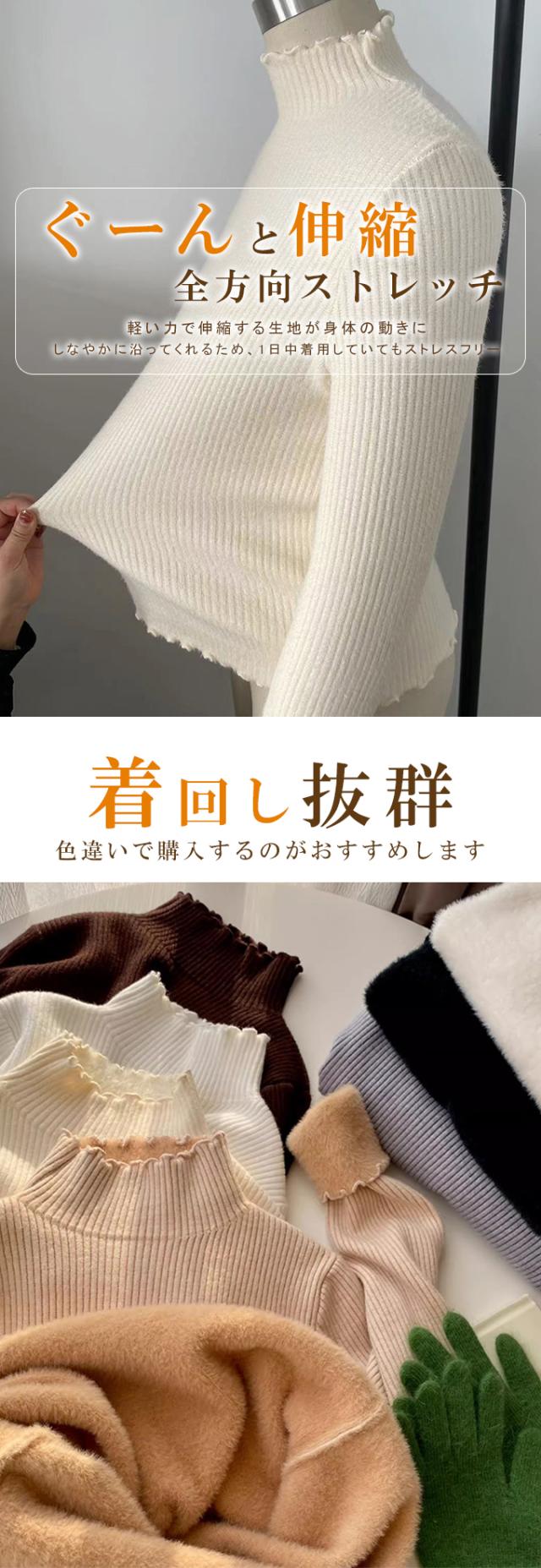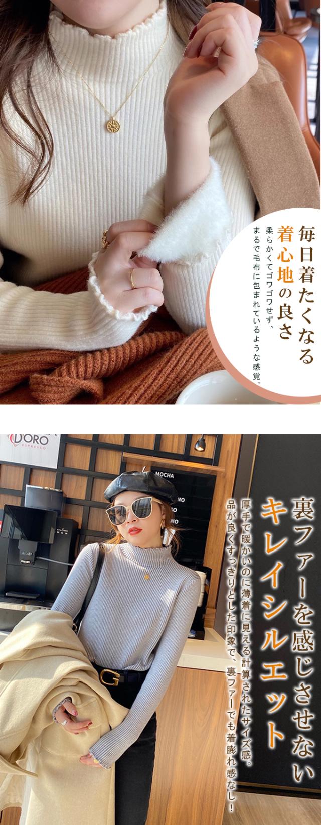半額ク−ポン、キャンペーン中、1990円裏シャギー 裏起毛 ニット トップス レディース ハイネック メローデザイン セーター フリル 裏ボア 秋冬 長袖 オフィス カジュアル きれいめ 暖か 防寒 上品 大人 レイヤード もっちり