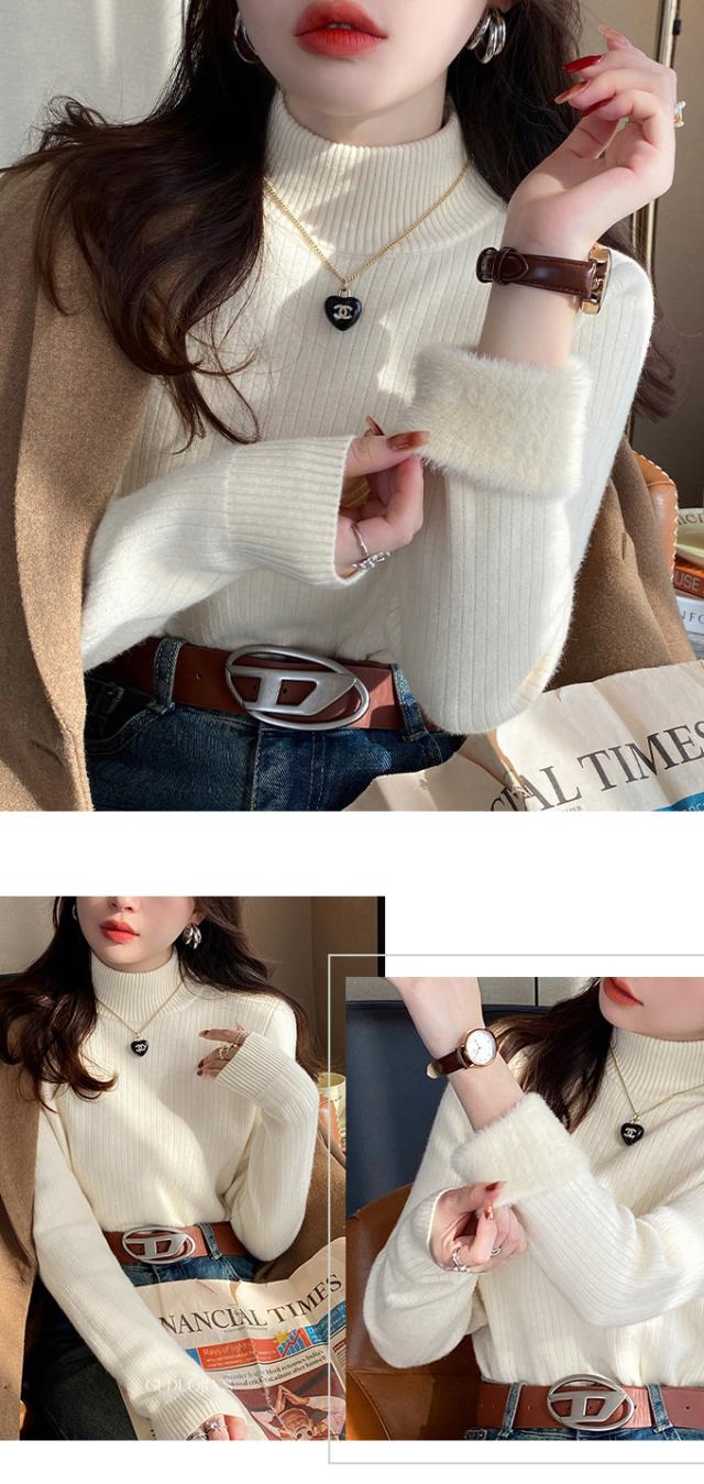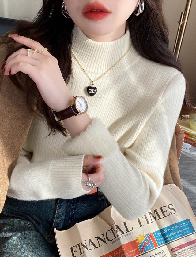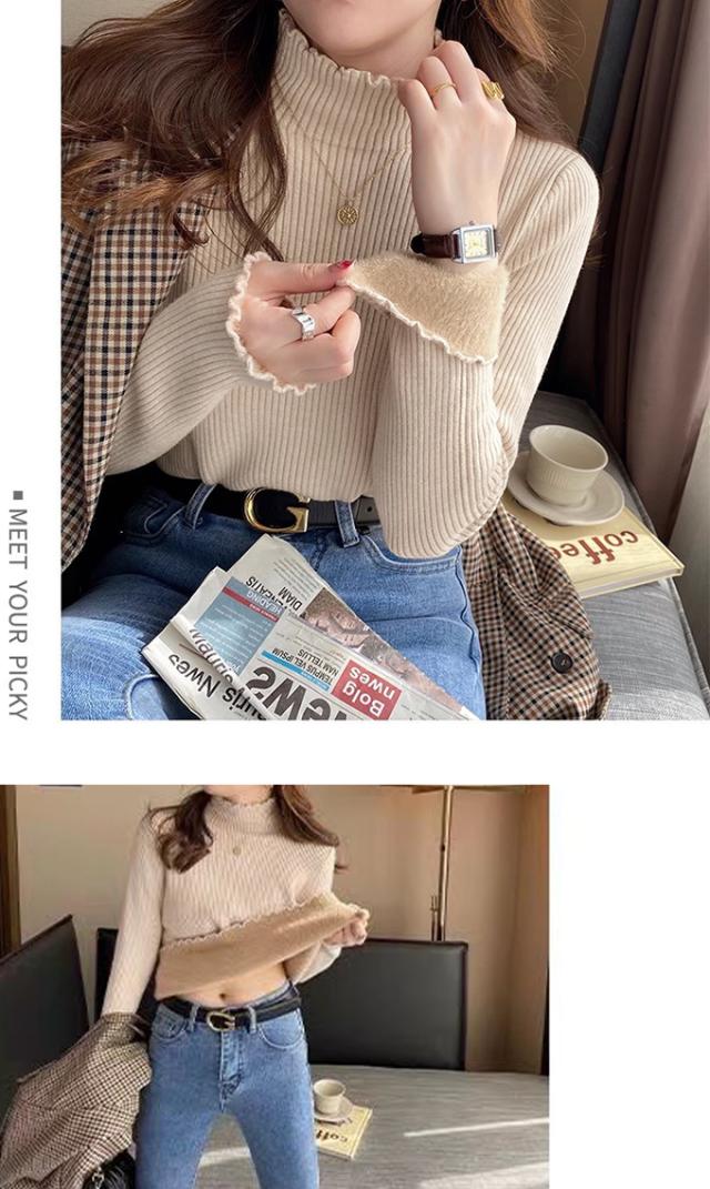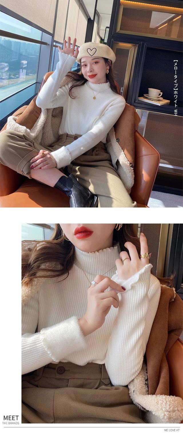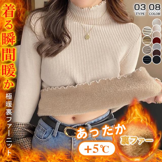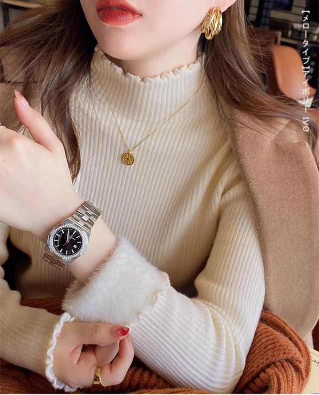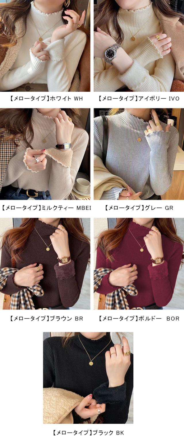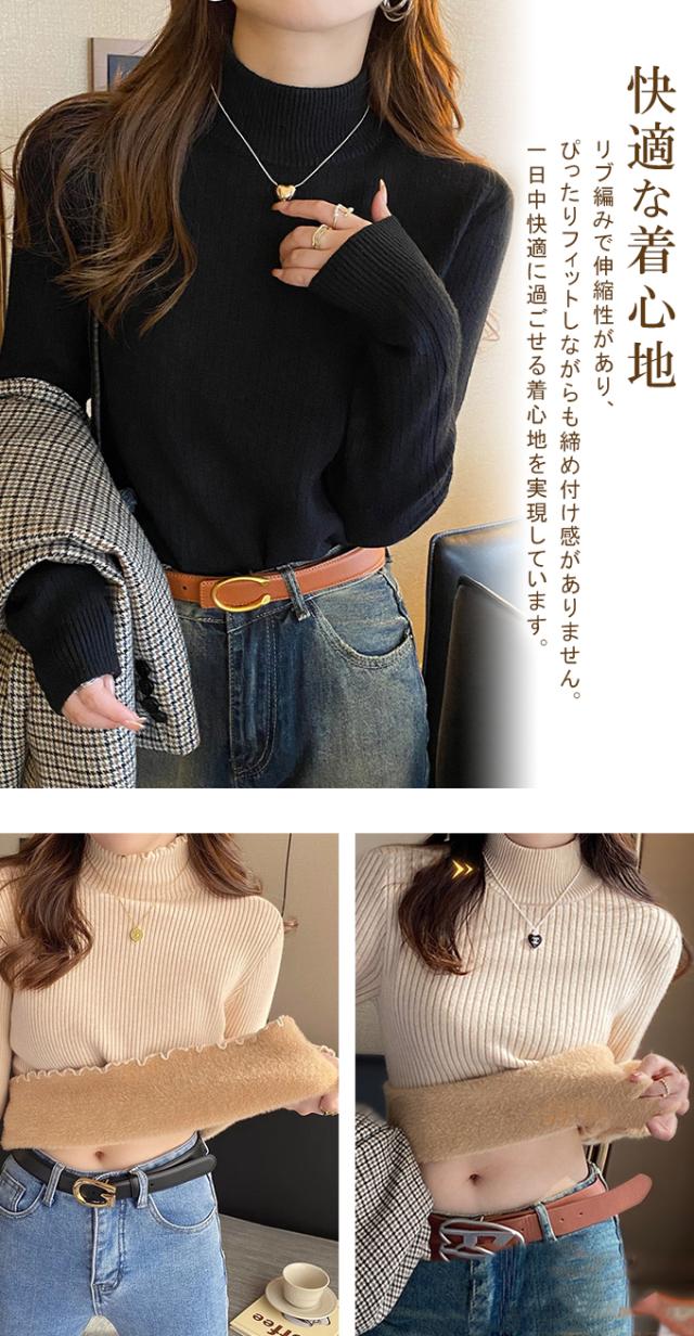 半額ク−ポン、キャンペーン中、1990円裏シャギー 裏起毛 ニット トップス レディース ハイネック メローデザイン セーター フリル 裏ボア 秋冬 長袖 オフィス カジュアル きれいめ 暖か 防寒 上品 大人 レイヤード もっちり