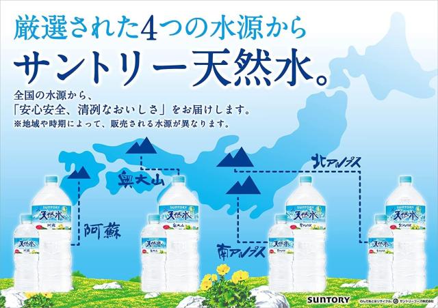 ▲サントリー天然水の各採水地パッケージは、「サントリー天然水」へ統合されました。