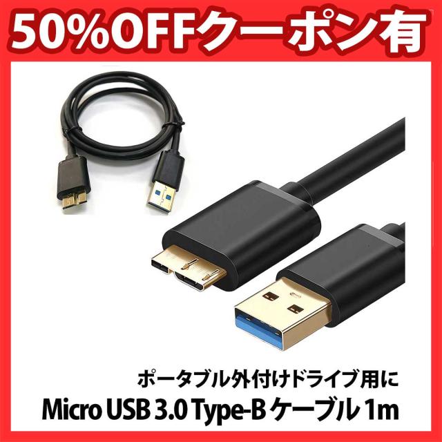 50%offクーポン有 Micro USB 3.0 Type-B ケーブル 長さ1m SSD HDD DVD BD microB USB3.0 マイクロB micro type-B 外付け 外付けドライブ ポータブルドライブ USBケーブル シンプル 外付けHDD 外付けDVD 外付けSSD Blu-ray ハードディスク DVDドライブ BDドライブ SSDドライブ
