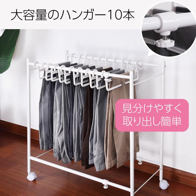ズボンハンガーラック スラックスハンガー 10本収納 キャスター付き 省スペース ズボン ハンガーラック 便利グッズ 便利 新生活 zubon-r02
