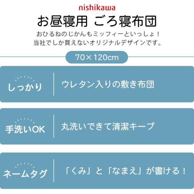 ★西川 お昼寝マット お昼寝布団 ミッフィー ごろ寝 敷布団 70×120cm 洗える 保育園 幼稚園 入園準備 クッション キッズ ベビー