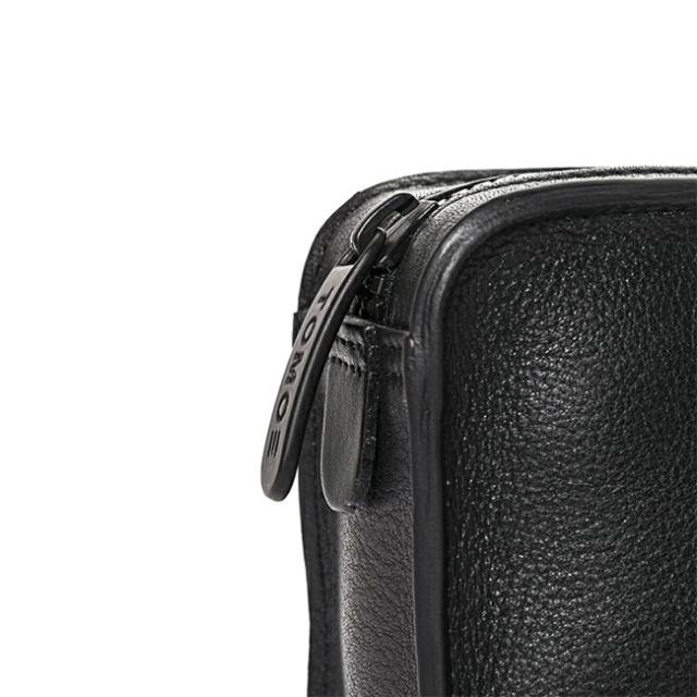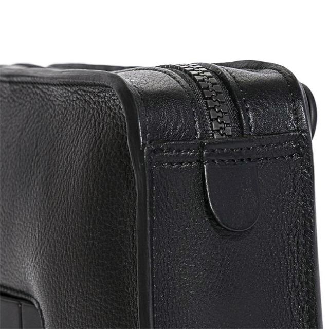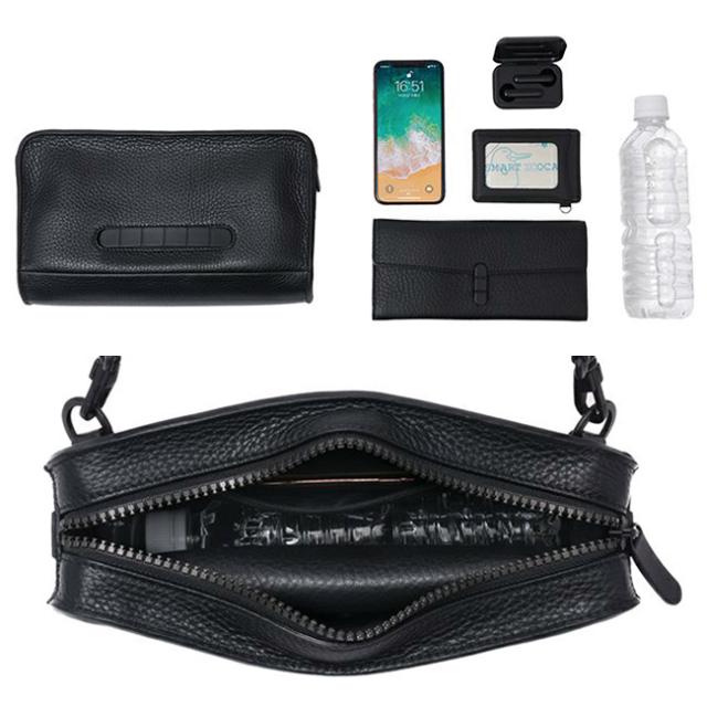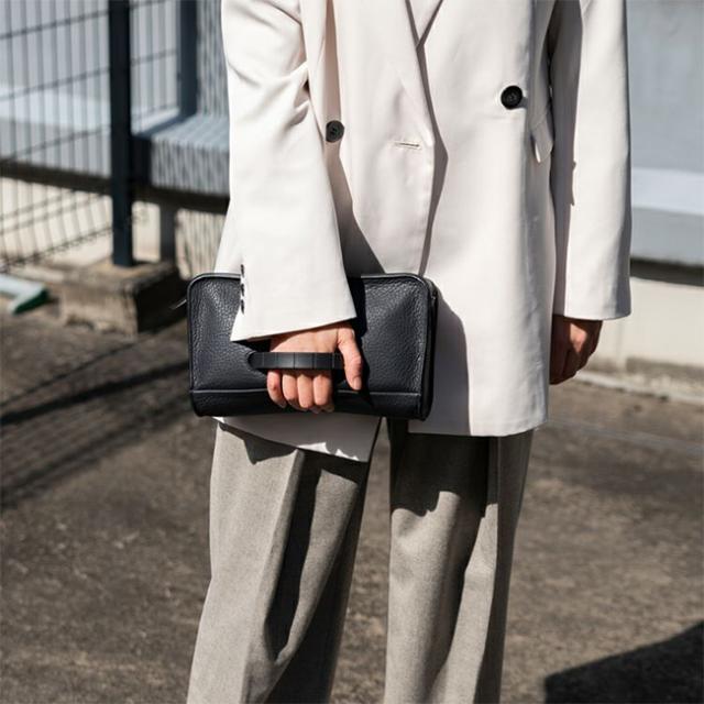 | 枠にとらわれないビジネスパーソンに向けたシリーズ。 肉厚のシボ革が、上質で重厚感を醸し出す。 ショルダーとクラッチ使いが可能な2wayボディバッグ。財布やスマホなど必需品一式が収まるサイズ感。バッグインバッグとしても使えます。 「レザー×異素材」のハイブリットなデザインが洗練されたアクセントに。 ショルダーストラップを取り付けボディバッグとして、バッグ上部のハンドルを使って手持ちでと、用途に合わせて持ち方を変えられます。 出し入れが可能なTPEE(ウレタン樹脂)スライド式ハンドルは、スマートさとスムーズな使い心地を追求し、構造から独自で開発しました。 また、ショルダーストラップの取り付け金具位置を背面にすることで、クラッチ持ちの際にデザインの邪魔をしないといった工夫も。 革のエッジ(断面部)は厚みのあるコバ塗りを採用。何層にも塗り重ね磨き上げた職人技で、重厚感と美しい光沢を生み出し、ミニマルでシャープなフォルムを際立たせています。 開閉部はすべりが滑らかなビスロンファスナー仕様で操作性も良く、見た目の無骨さも演出。 ロゴ入りのスチール素材の引き手は、緩やなカーブをつけることで、指でつまみやすい形状に開発しました。 内装には複数のポケットを装備し、荷物をスッキリ整理できます。 |