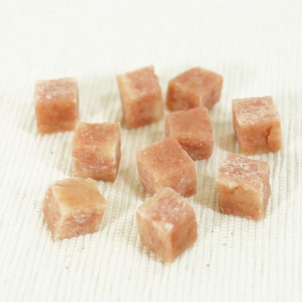 穀類(小麦粉、小麦グルテン)、肉類(鶏肉、牛肉、鶏ササミ)、チーズ、糖類、ゼラチン、乳酸菌(乳酸菌代謝産物含有)、グリセリン、ミネラル類(カルシウム、ナトリウム)、ソルビトール、pH調整剤、着色料(コチニール、クチナシ)、膨張剤、香料、ビタミンE