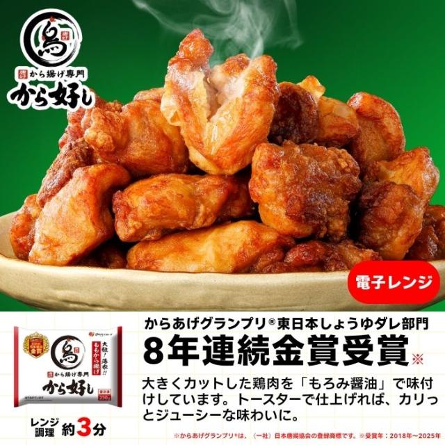 【から好し ももから揚げ(230g/目安5個〜6個)】鶏肉(もも)、しょうゆ、植物油脂、還元水あめ、香辛料、粉末卵白、食塩、衣(でん粉)、揚げ油(パーム油、大豆油)/加工でん粉、調味料(アミノ酸等)、キシロース、炭酸Na、(一部に小麦・卵・乳成分・大豆・鶏肉を含む)