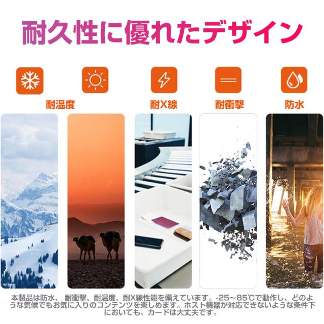 動作環境 | ファイルシステムexFATに対応した、microSDXC対応機器でのみご使用ください。 SD規格における高速バスインターフェースの新規格UHS-I に対応しています。 UHS-I 対応機器でのみ、UHS-I モードで使用できます。 温度-25〜85℃、湿度30〜80%RH(結露しないこと) |