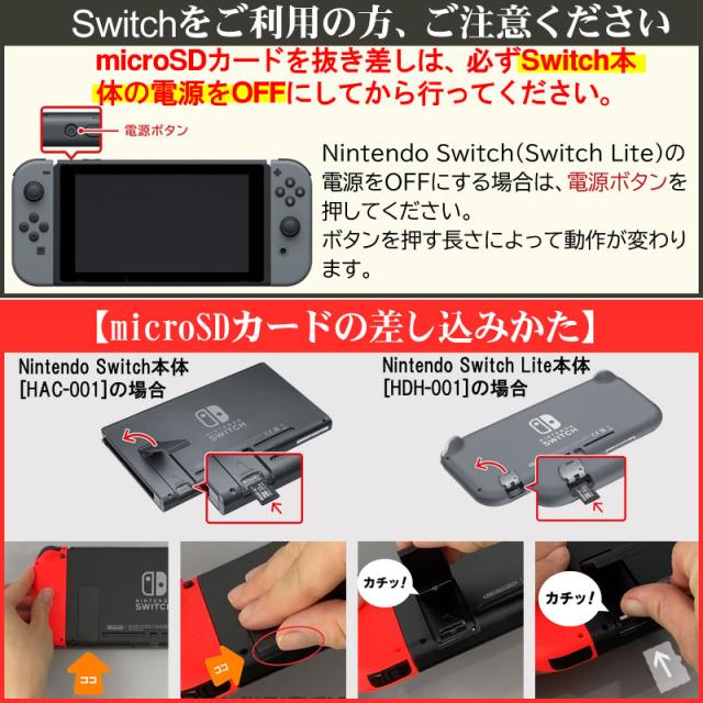 【Switchをご利用の方、ご注意ください】※microSD カードを抜き差しは、必ずSwitch本体の電源をOFFにしてから行ってください。