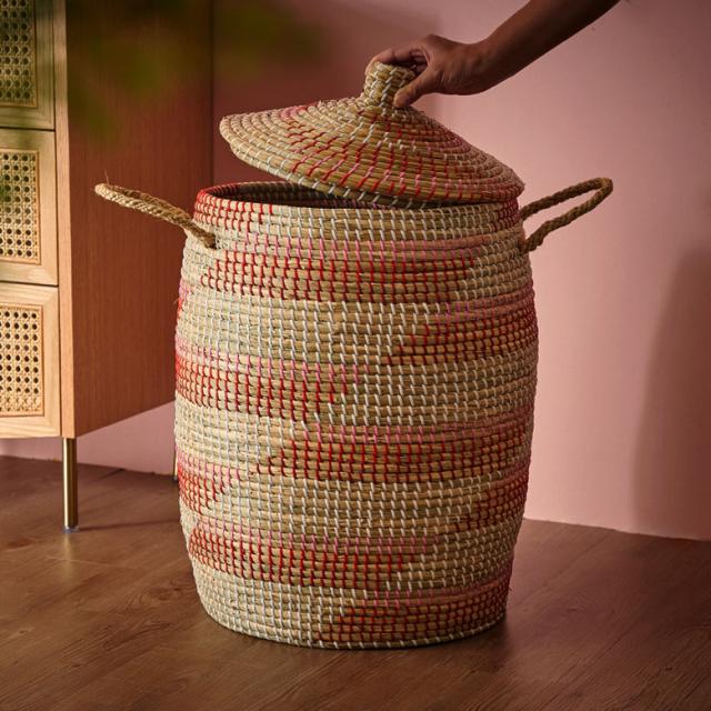 バスケット ふた付き 持ち手付き かごバスケット シーグラス 約 W41cm D41cm H60cm ナチュラル ピンク 収納 セネガルバスケット 51350