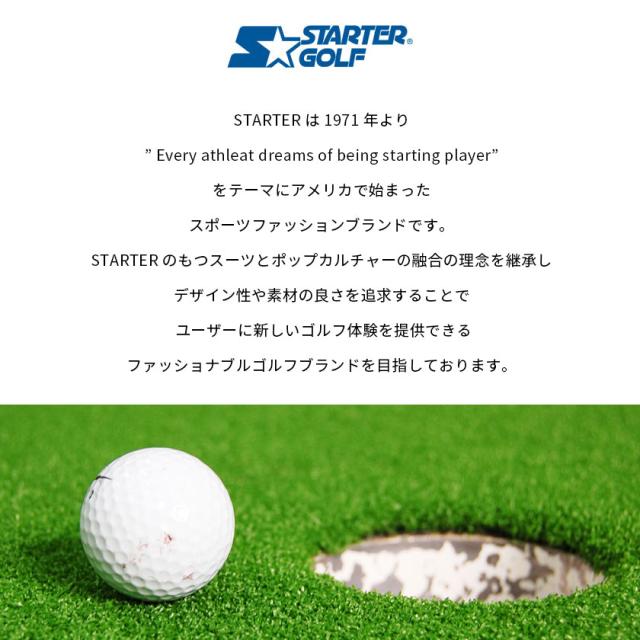 STARTER のもつスーツとポップカルチャーの融合の理念を継承しデザイン性や素材の良さを追求することでユーザーに新しいゴルフ体験を提供できるファッショナブルゴルフブランドを目指しております。