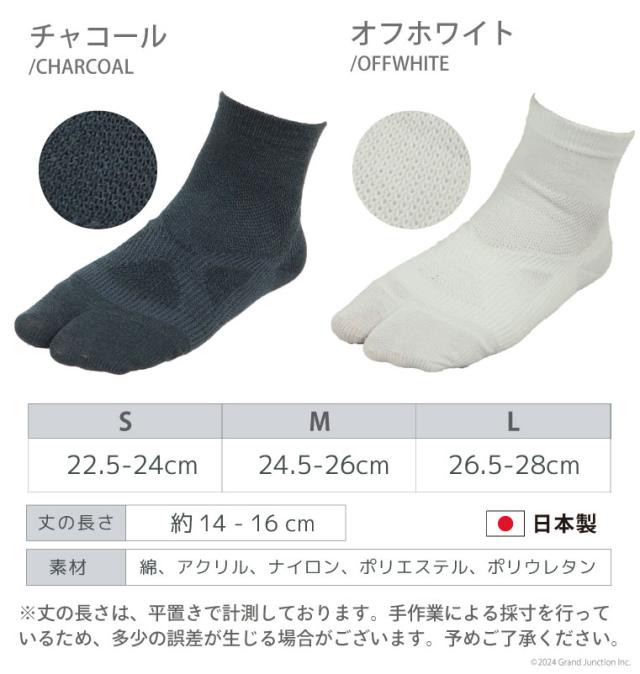 ■サポーター機能付きのショートクルー丈足袋ソックスです。テーピング効果で指の付け根や甲部分、かかと部分などをしっかりサポート!つま先を持ち上げてくれるので、歩きやすく疲れにくい! そのほかの部分も場所ごとに縫製方法を変えているので足にしっかりフィットしやすくなっています。