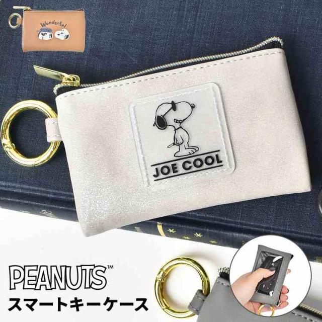 スマートキーはもちろん、ICカードや鍵も一緒に収納できるスヌーピー柄キーケース。