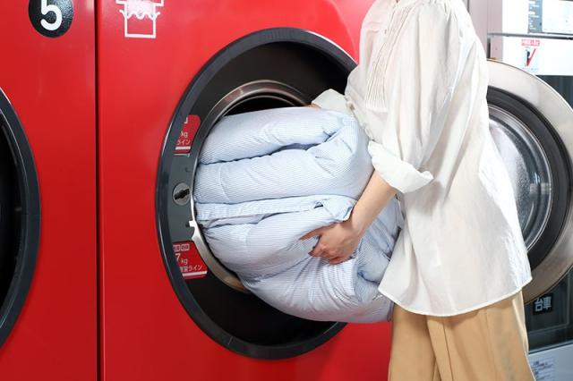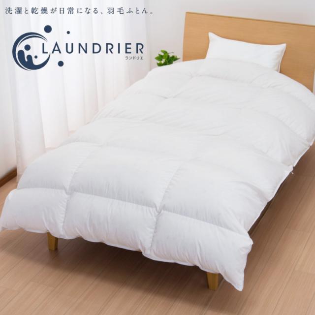 コインランドリーで洗える羽毛布団【ランドリエ】汚れても安心。コインランドリーでいつでも洗って乾燥までOK! 繰り返し洗っても、ふんわり感と暖かさをキープ。