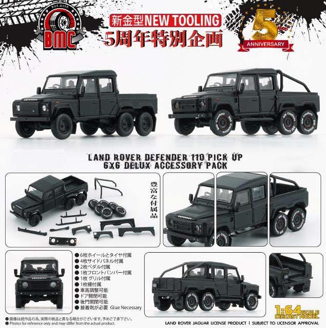 BM CREATIONS 1/64 ランドローバー ディフェンダー 110 ピックアップ 6x6 2016 アクセサリー付 マットブラック RHD です。
