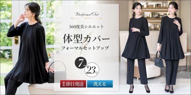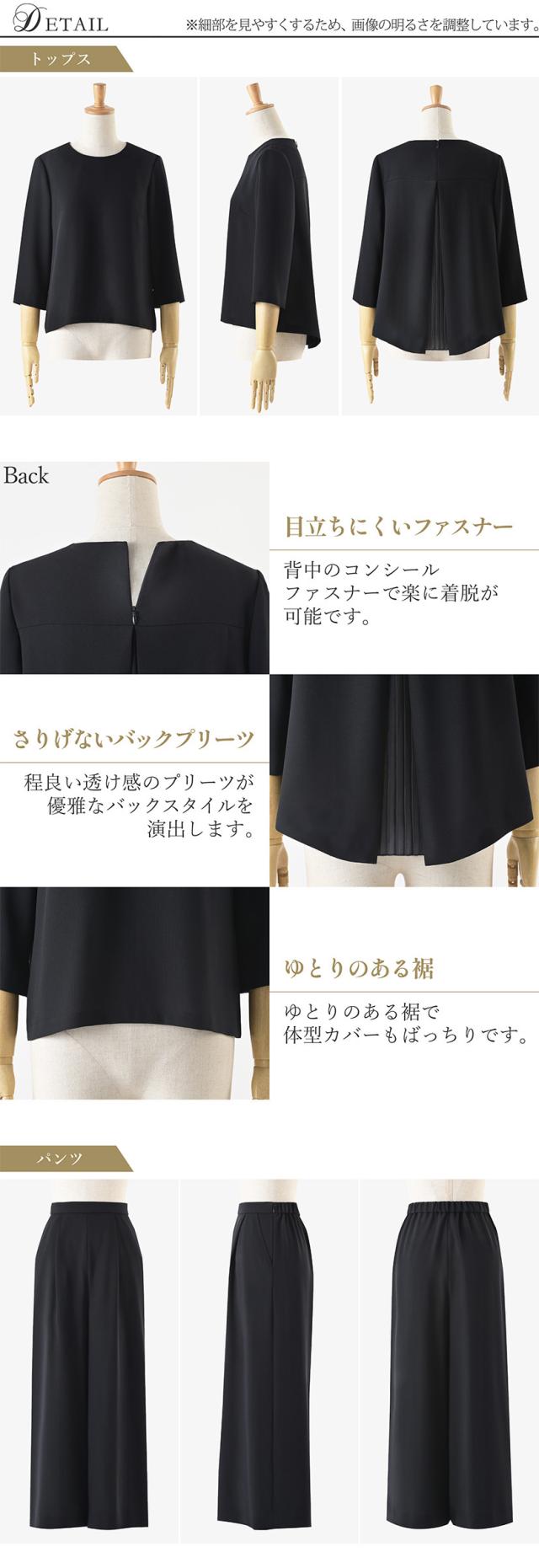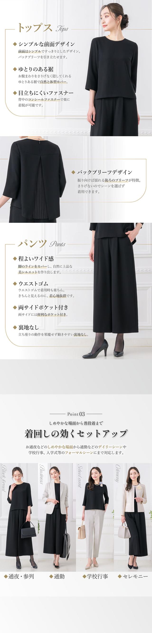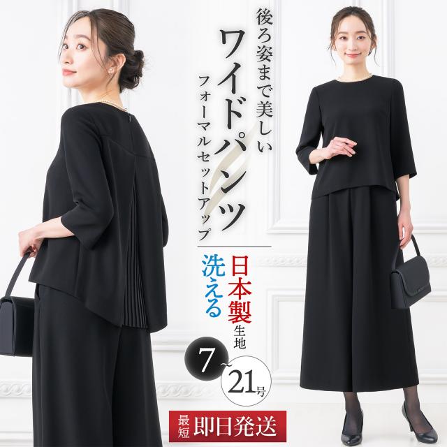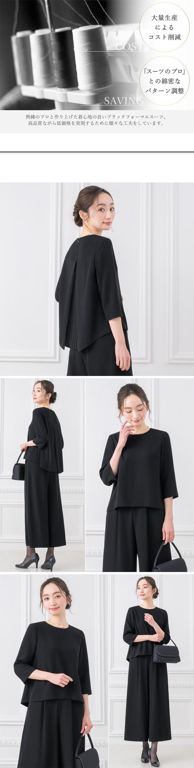 日本製生地 洗える 喪服 レディース スーツ 2点セット セットアップ セレモニースーツ フォーマルスーツ トップス パンツ ブラック フォーマル 入学式 卒業式 大きいサイズ 小さいサイズ 体型カバー ゆったり