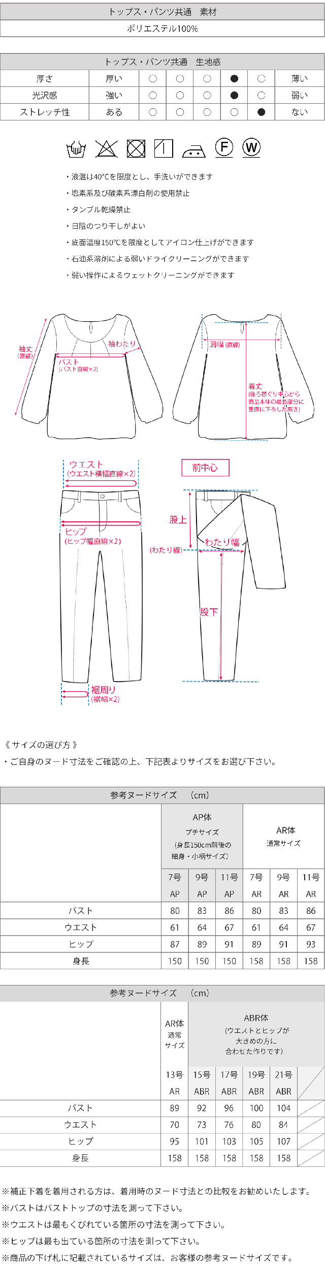 トップス、パンツ共に裏地なしで暑い時期にも涼しく着られます。