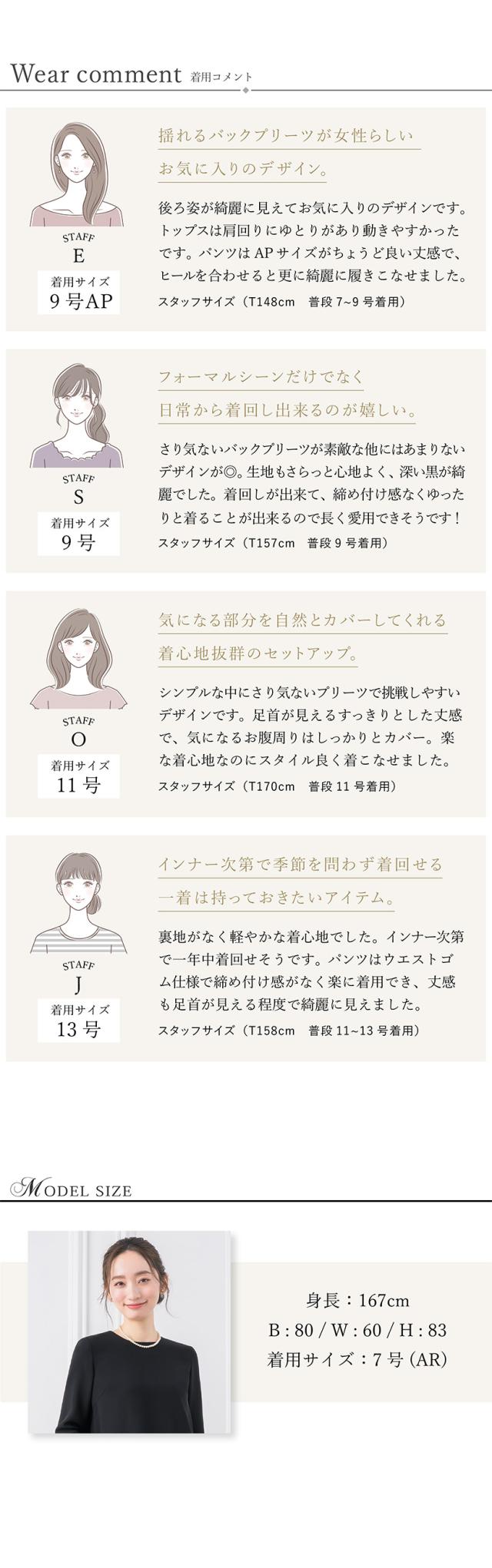 トップスは、後ろ姿まで美しく魅せる、バックプリーツデザインがポイント。