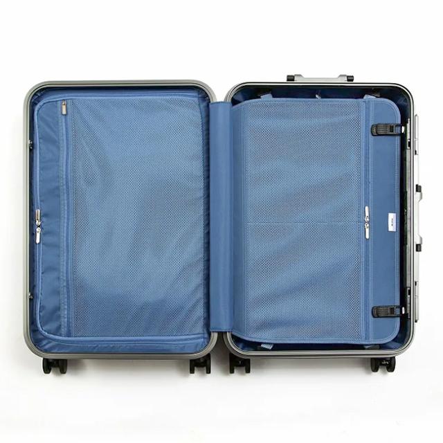 | 人気商品『クレスタ2』のフレームタイプが登場 スタイリッシュなデザインのボディシェルとヘアラインの加工が施されたカラーが映える高級感のあるスーツケース。4泊〜5泊程度の旅行や出張に適した、コンパクトながら大容量のスーツケースです。 ●電車やバスなどの公共機関や空港、坂道などでキャスターの不意な走行を防止するキャスターストッパー付。背面にあるスイッチで簡単に操作できます。 ●旋回性に優れ、容易に方向転換が可能な双輪キャスター。 ●身長や持ち方に合わせて調節可能なシステムハンドル。 ●持ち運びに便利なサイドハンドル搭載。 ●施錠したまま預けることができるTS LOCK(Travel Sentry 認可ロック)を搭載。キーを必要としない3ケタのダイヤル式。 |