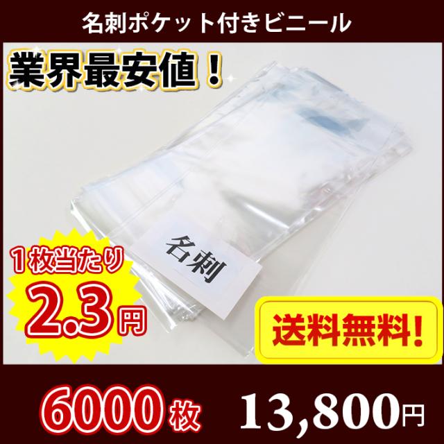 【送料無料】業界最安値!1枚当たり2.3円 名刺ポケット付きビニール 6000枚 /名刺ポケット付きナイロン ナイロン 名刺 名刺ポケット 御年賀 ご挨拶 粗品