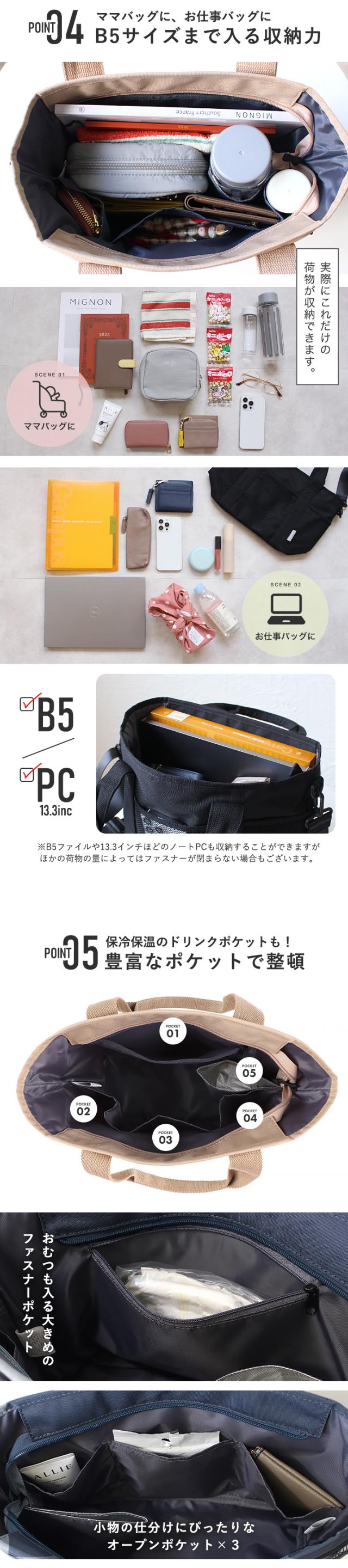 マザーズバッグ トート トートバッグ レディース ママバッグ 中身 整理 ショルダーバッグ 斜めがけ 大人 軽い 保冷 保温 抗菌 防臭 ファスナー付き 2way 軽量 自立 肩掛け 上品 おしゃれ かわいい LIZDAYS リズデイズ ママラク【lz-40701】