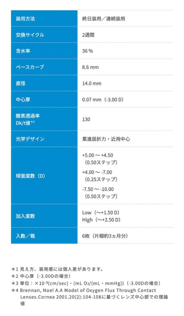 ■ADD:Low(+1.50D)、High(+2.50D) ■中心厚:(-3.00の場合):0.07