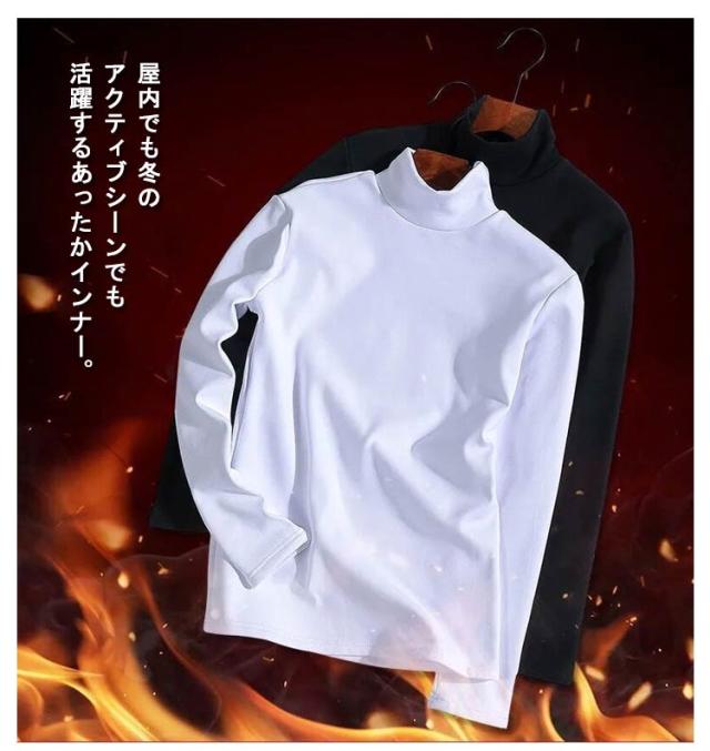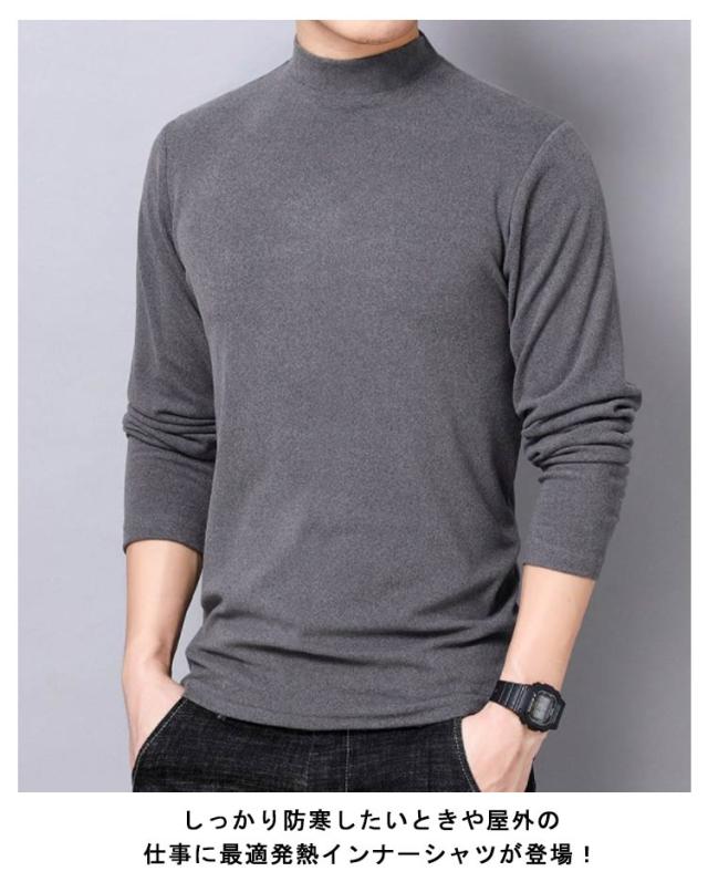 ハイネックシャツ メンズ 秋冬 あったかインナー 暖かい インナー 肌着 下着 長袖 発熱 防寒 裏起毛 厚手 キャンプ 釣り 送料無料 防寒着 防寒 インナー メンズ ロングTシャツ カットソー 防寒インナー