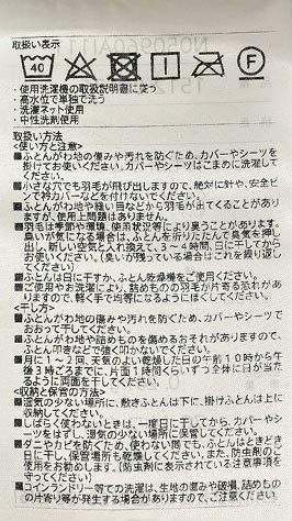 | ご使用の前に | 製造過程においてホコリなどが付いている場合がございますので、掛け布団カバー、シーツなどはご使用前に一度お洗濯していただくことをお勧めしております。 |