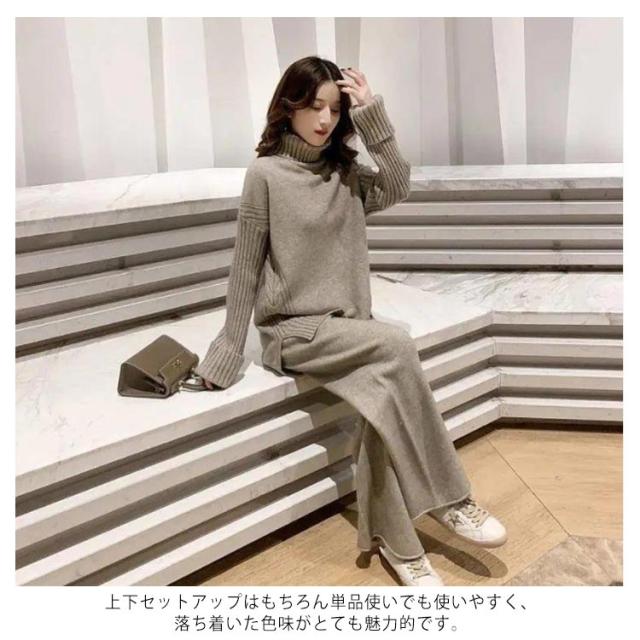 | 全6色!ゆったり着れてきちんと見えるニットセットアップ。 着心地の良い、柔らかい素材のニットセットアップ。 上下セットアップはもちろん単品使いでも使いやすく、落ち着いた色味がとても魅力的です。 サイドに入ったスリットと落ち感のあるセーター、綺麗に見せてくれる体型カバーアイテムです。 ニットワイドパンツは、何にも相性抜群で、手持ちのアイテムとも気軽に合わせられるのもうれしいポイント。 | |