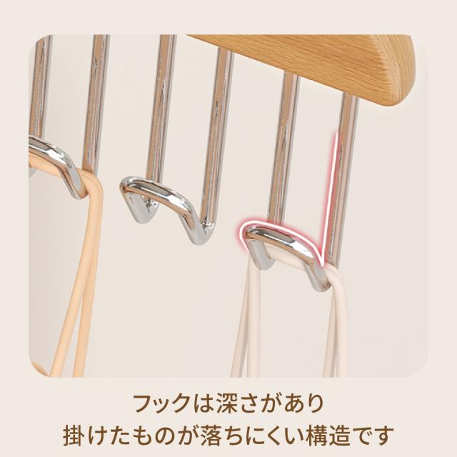 フックは深さがあり、掛けたものが落ちにくい構造です。