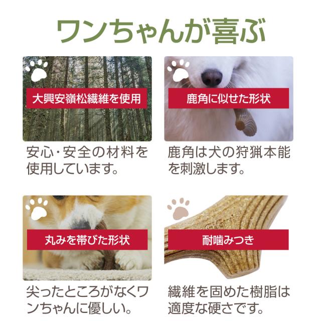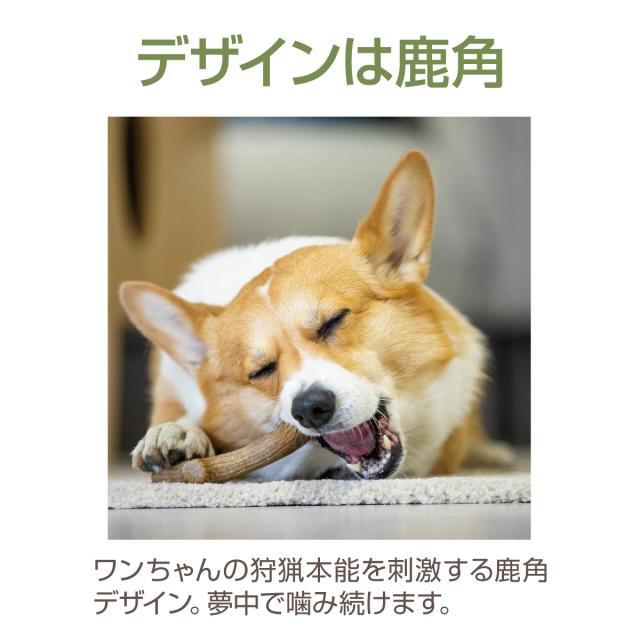 【デザインは鹿角】ワンちゃんの狩猟本能を刺激する鹿角デザイン。夢中で噛み続けます。