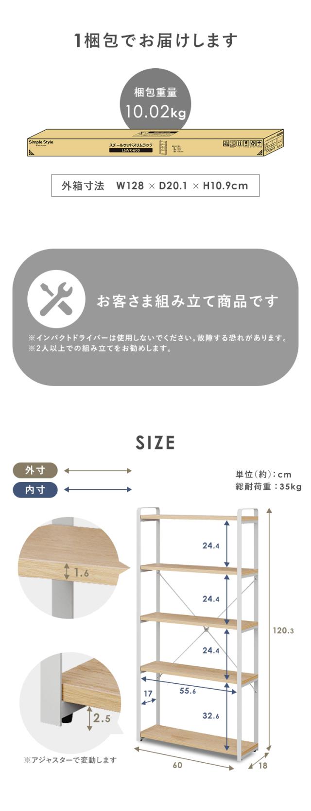 ★全品対象250円offクーポン★ ラック 棚 5段 スリム 収納棚 白 おしゃれ オープン オープンラック 薄型 シェルフ 韓国 インテリア キッチン 一人暮らし 新生活 アイリスオーヤマ LaLassic LSWR-600 * 新生活 インテリア