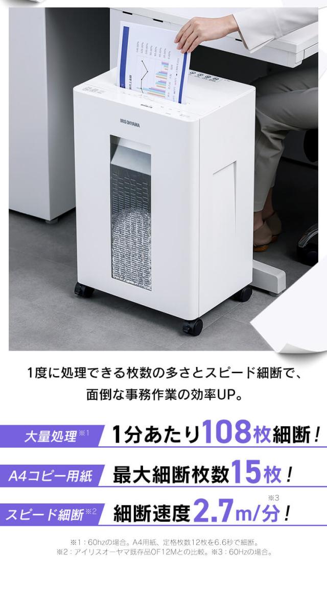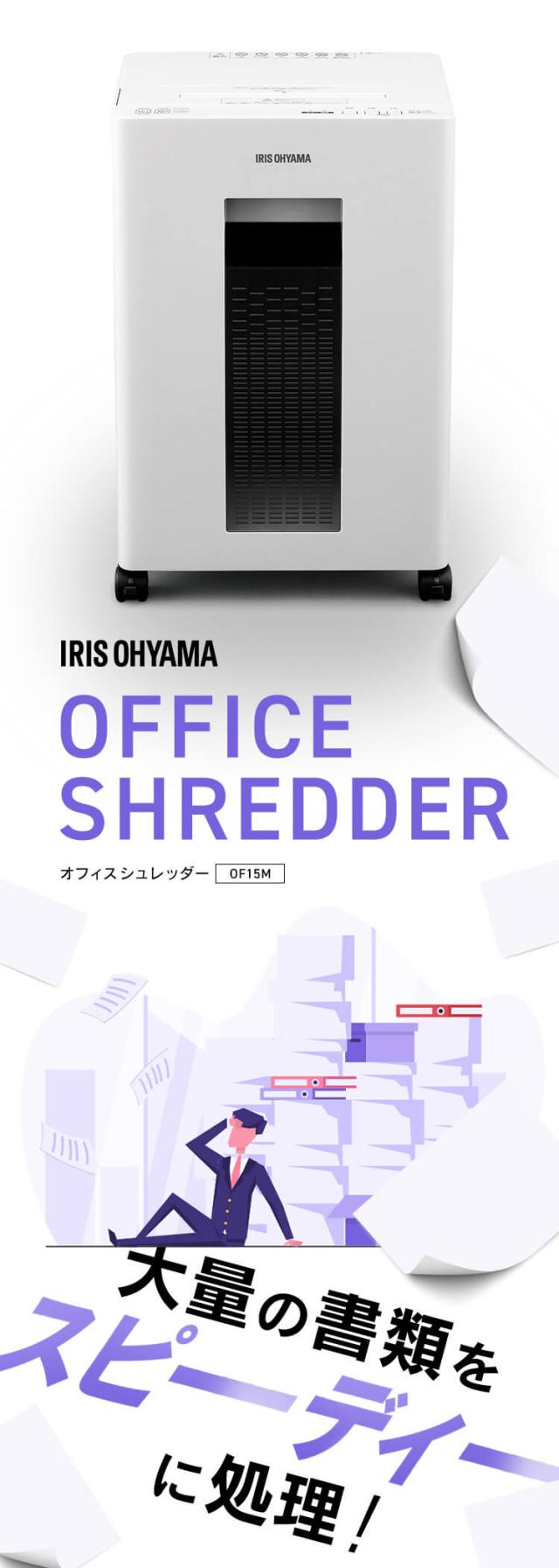 シュレッダー 電動 マイクロクロスカット オフィスシュレッダー OF15M シュレッダー 電動 マイクロクロスカット 細密細断 オフィス 会社 大容量 キャスター付き 細断 アイリスオーヤマ 送料無料