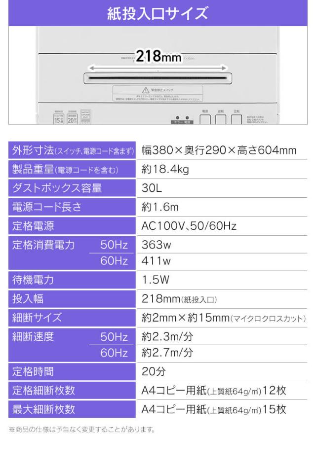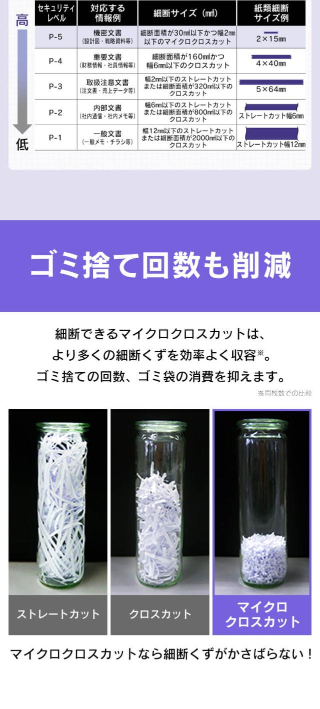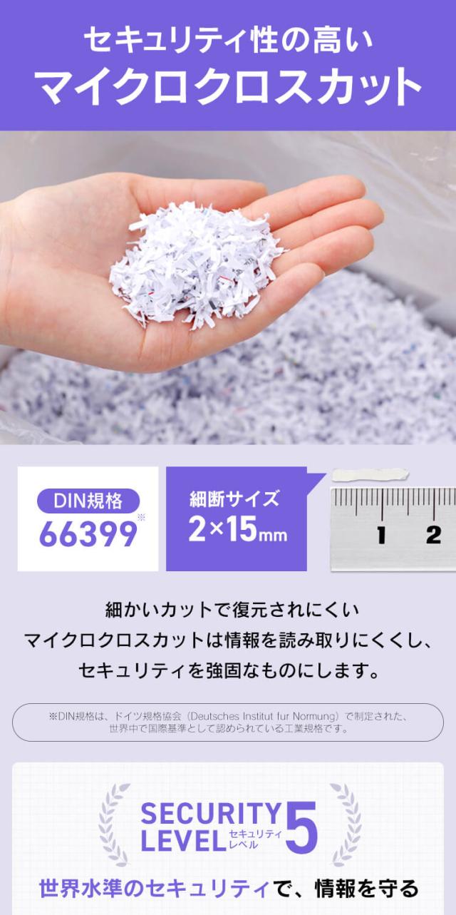2×15mmの細かいカットで個人情報や機密情報の漏洩を防ぎます。