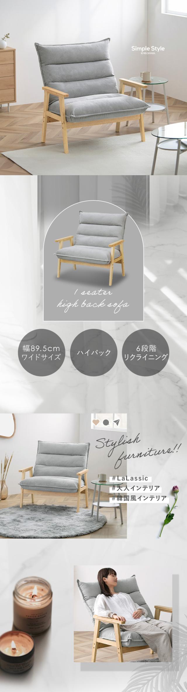 1人掛けソファ ハイバック ソファ 1人掛けワイドハイバックソファ LHB-1W グレー ワイド 椅子 イス 1人掛け リクライニング 1Pソファ ファブリック シンプル Simple Style LaLassic アイリスオーヤマ 送料無料