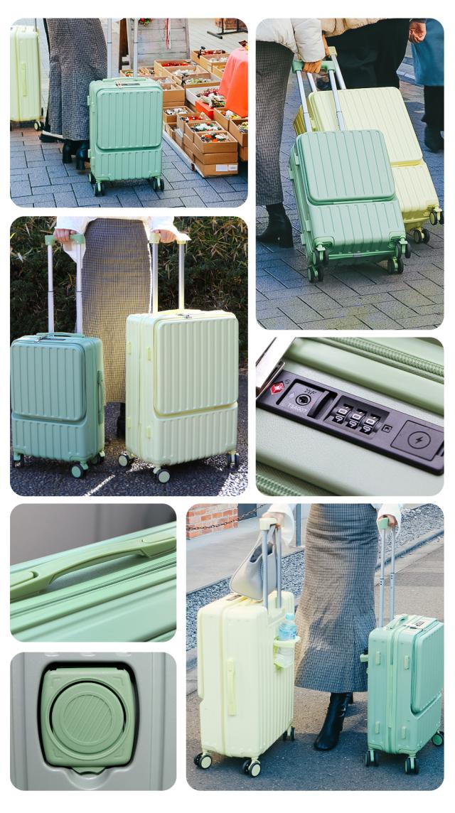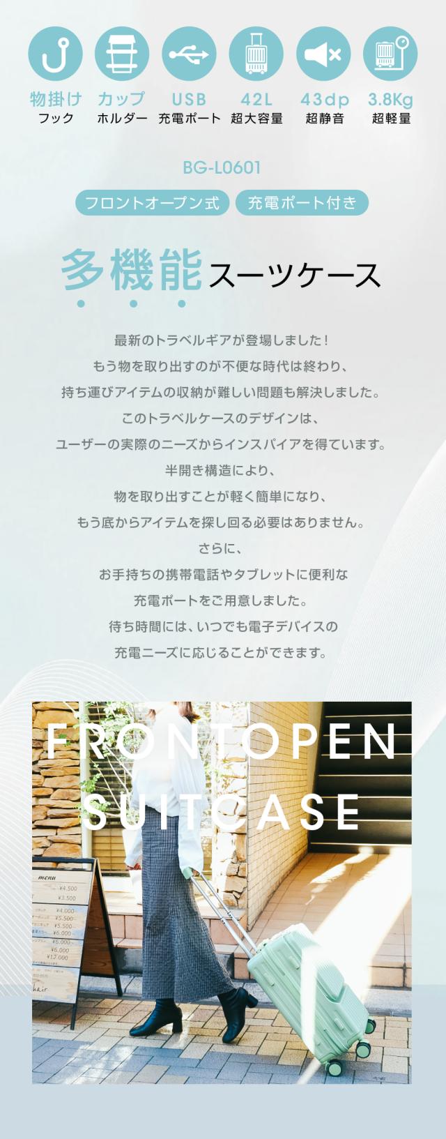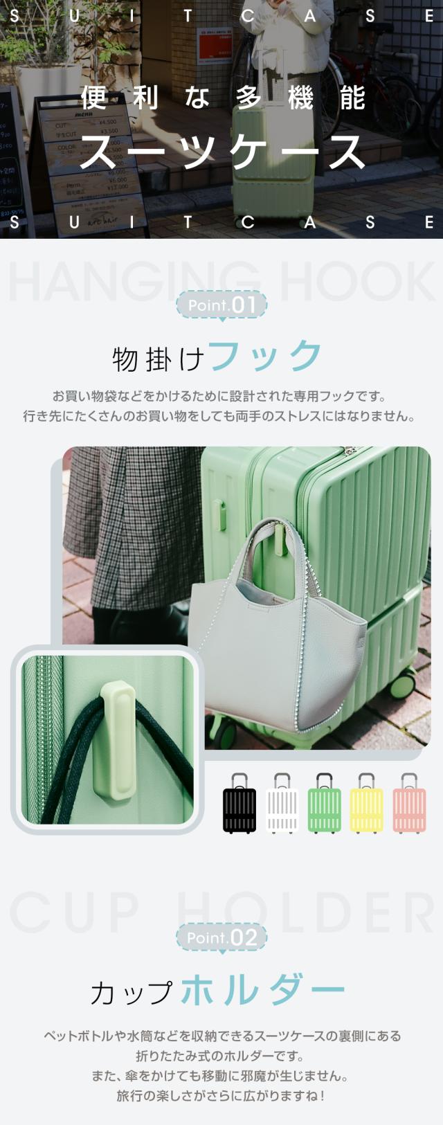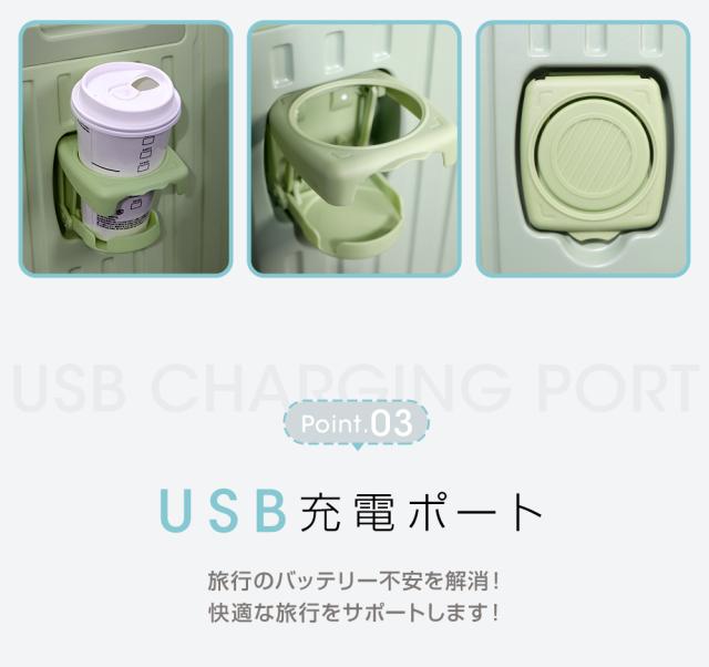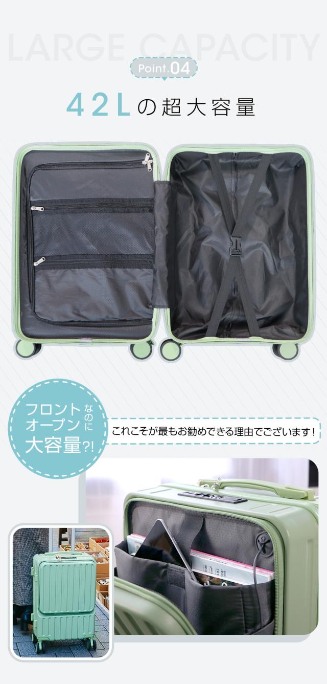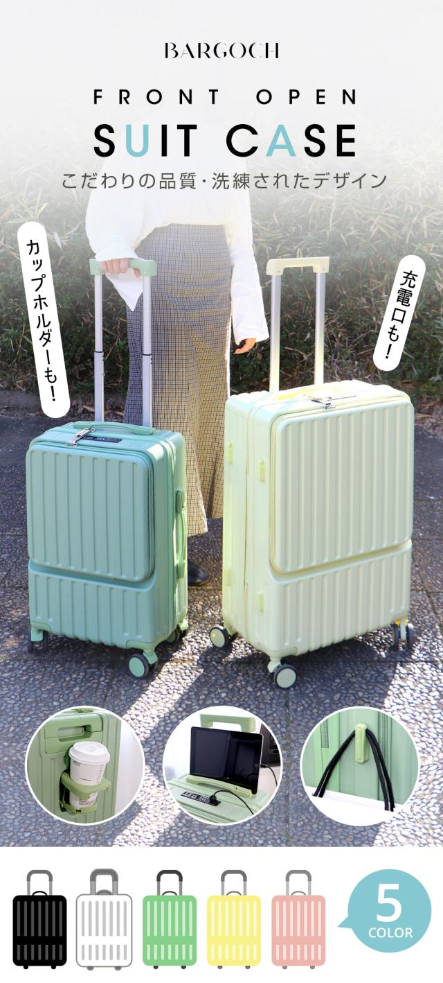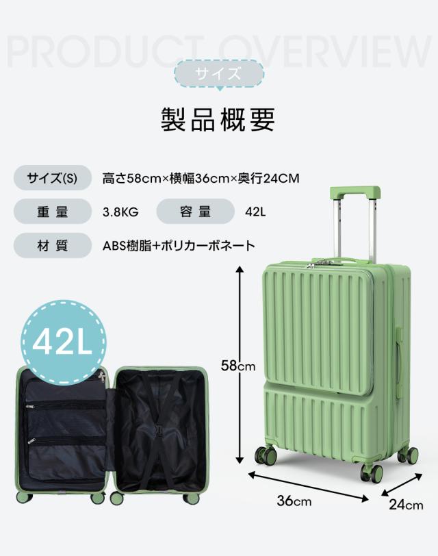 スーツケース Sサイズ キャリーケース 機内持ち込み フロントオープン 静音 キャリーバッグ カップホルダー付き USB充電ポート 360度回転キャスター 軽量 TSAロック 1年保証