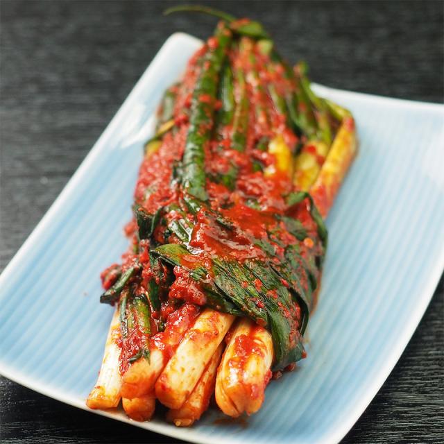 - ネギのキムチ?食べた事の無い 初めて注文する時 心配でした。届いて食べたら クセになり 何度もリピートして終わる前に 注文しています。