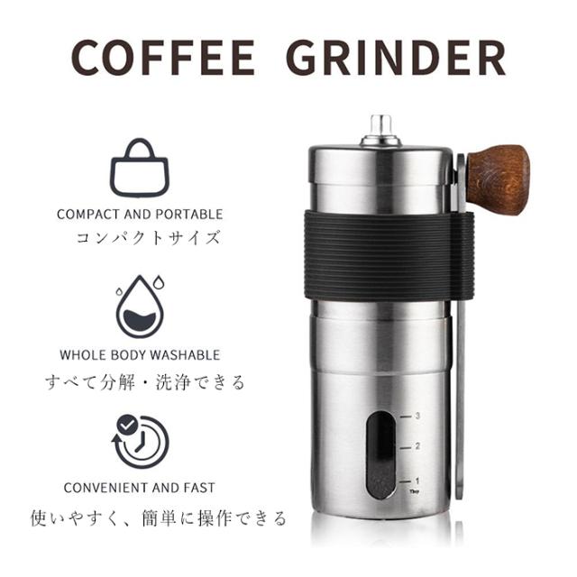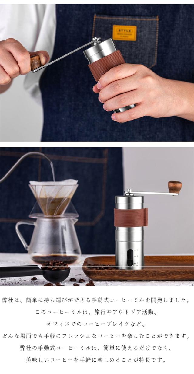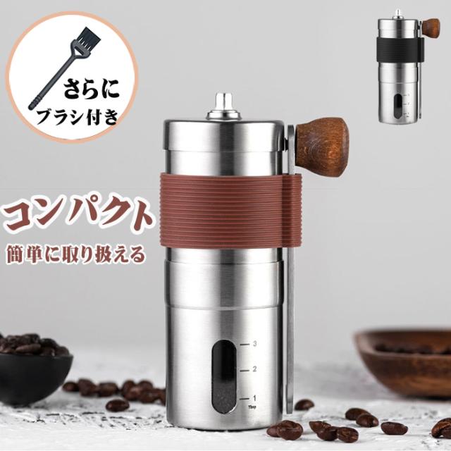 【早い者勝ち!!】コーヒーミル 手動 掃除ブラシ付き ミニ手挽き ミニ型 旅行用 アウトドア コンパクト キャンプ お セラミックカッター ステンレスミル 滑らない 手挽きコーヒーミル ハイキング ハンドメイド コーヒーロースター